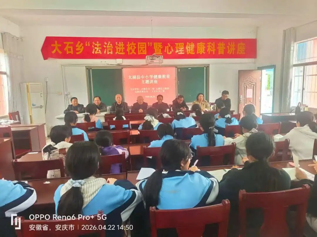 4月22日,由太湖县关工委、县卫健委、县教育局及大石乡关工委联合主办的“太湖县中小学健康教育主题讲座”走进大石中学,特邀县中医院妇产科主任为女学生专题讲解青春期健康知识,以专业科普为青春护航,收获师生一致好评。
